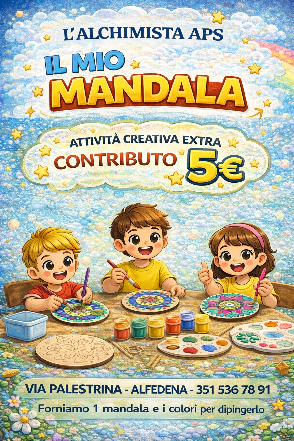 Il mio Mandala è un’attività creativa pensata per bambini dai 4 ai 13 anni, dove i partecipanti potranno dipingere e decorare il proprio mandala con colori e fantasia. Ogni bambino riceverà un mandala e i colori per personalizzarlo liberamente.