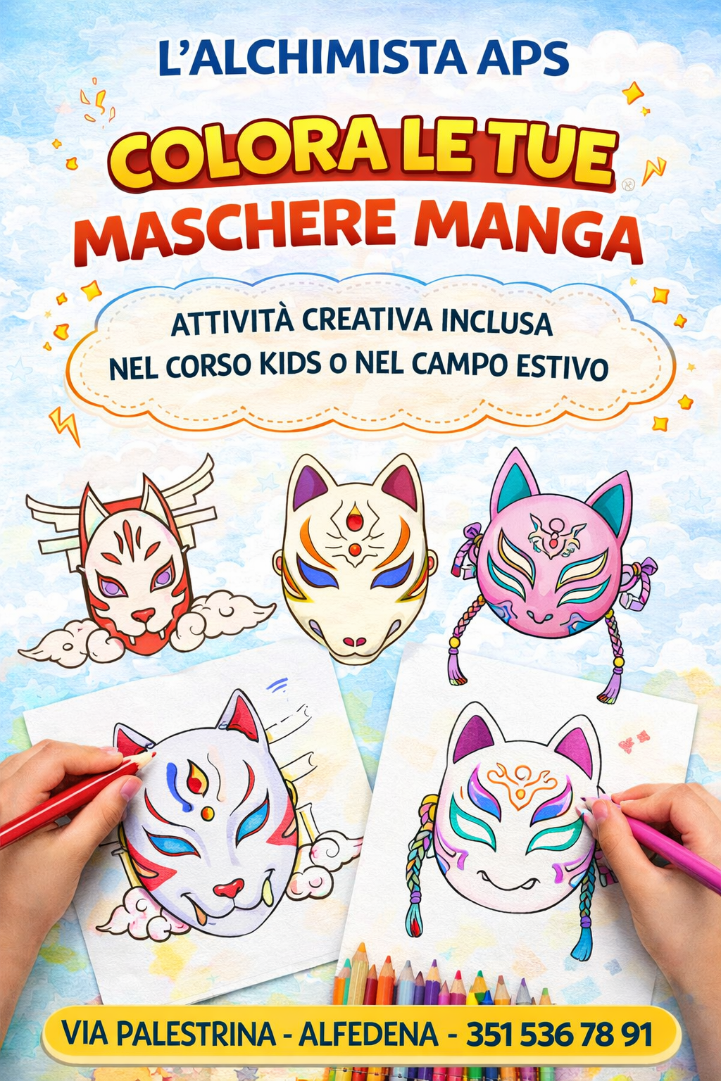 Colora le tue Maschere Manga è un’attività creativa pensata per bambini dai 4 ai 13 anni, dove fantasia e colori prendono ispirazione dallo stile giapponese. I bambini potranno colorare e personalizzare maschere in stile manga, scegliendo i colori e i dettagli per renderle uniche.