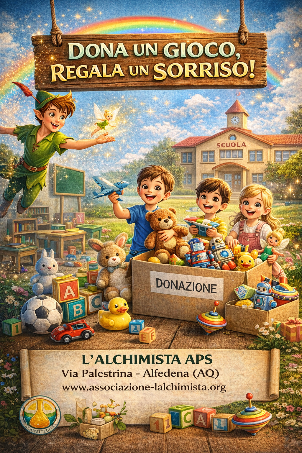 Noi de L’ALCHIMISTA APS crediamo fermamente che i bambini che vivono condizioni di disagio economico non debbano ricevere un dono soltanto durante le festività natalizie. Un giocattolo genera immediatamente gioia, accende un sorriso, regala un momento di leggerezza. E quel sorriso non può avere scadenze.