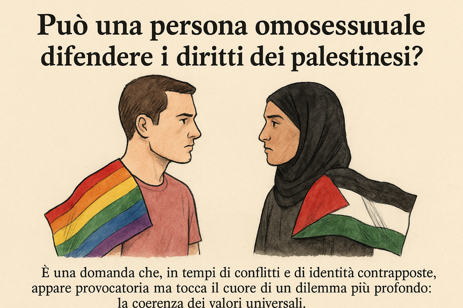 È una domanda che, a prima vista, può sembrare provocatoria: può una persona omosessuale difendere i diritti dei palestinesi? Eppure, se ci si ferma un momento a riflettere, la questione tocca il cuore stesso dell’universalità dei diritti. In tempi in cui tutto tende a dividersi in schieramenti, in appartenenze contrapposte, questa domanda suona come una richiesta di coerenza morale.