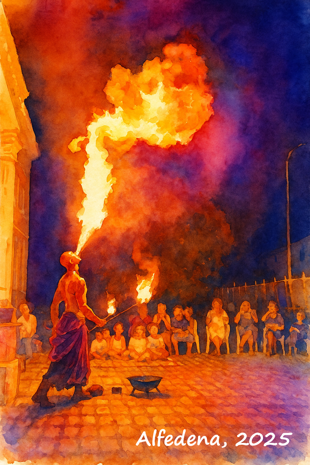 Al centro della scena, Nino Scaffidi, artista di strada capace di incantare e coinvolgere, ha dato vita a uno spettacolo intenso e indimenticabile. Le sue performance con il fuoco hanno illuminato la notte, creando immagini potenti e suggestive: fiamme che danzavano nell’aria, movimenti precisi e magnetici, attimi di pura adrenalina che hanno lasciato il pubblico con il fiato sospeso.